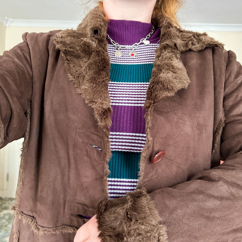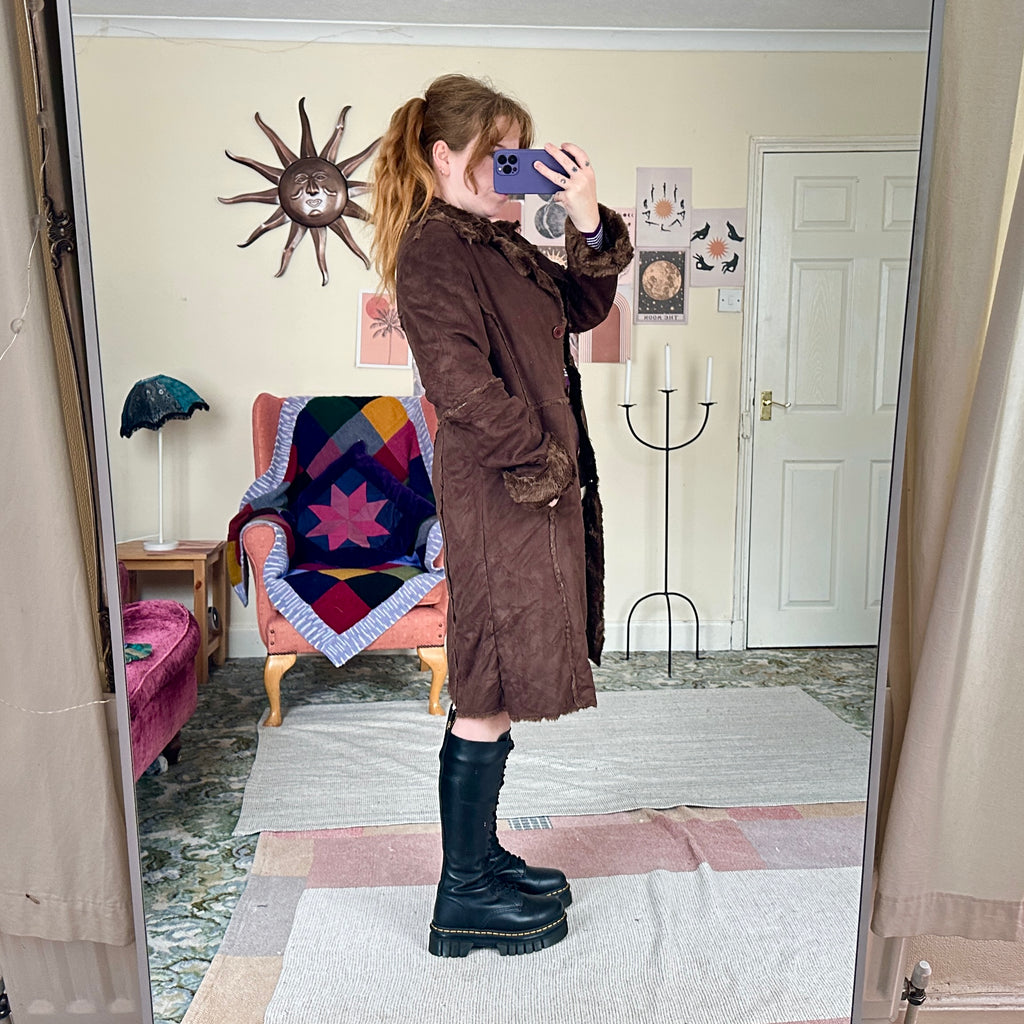 Dreamy vintage Afghan coat in earthy brown faux suede with faux fur lining. Features button front and cute collar, the perfect cosy jacket for chilly days. 🎃🎃 Size M - will fit size 8-12 comfortably, I’m size 10 for ref 🎃🎃