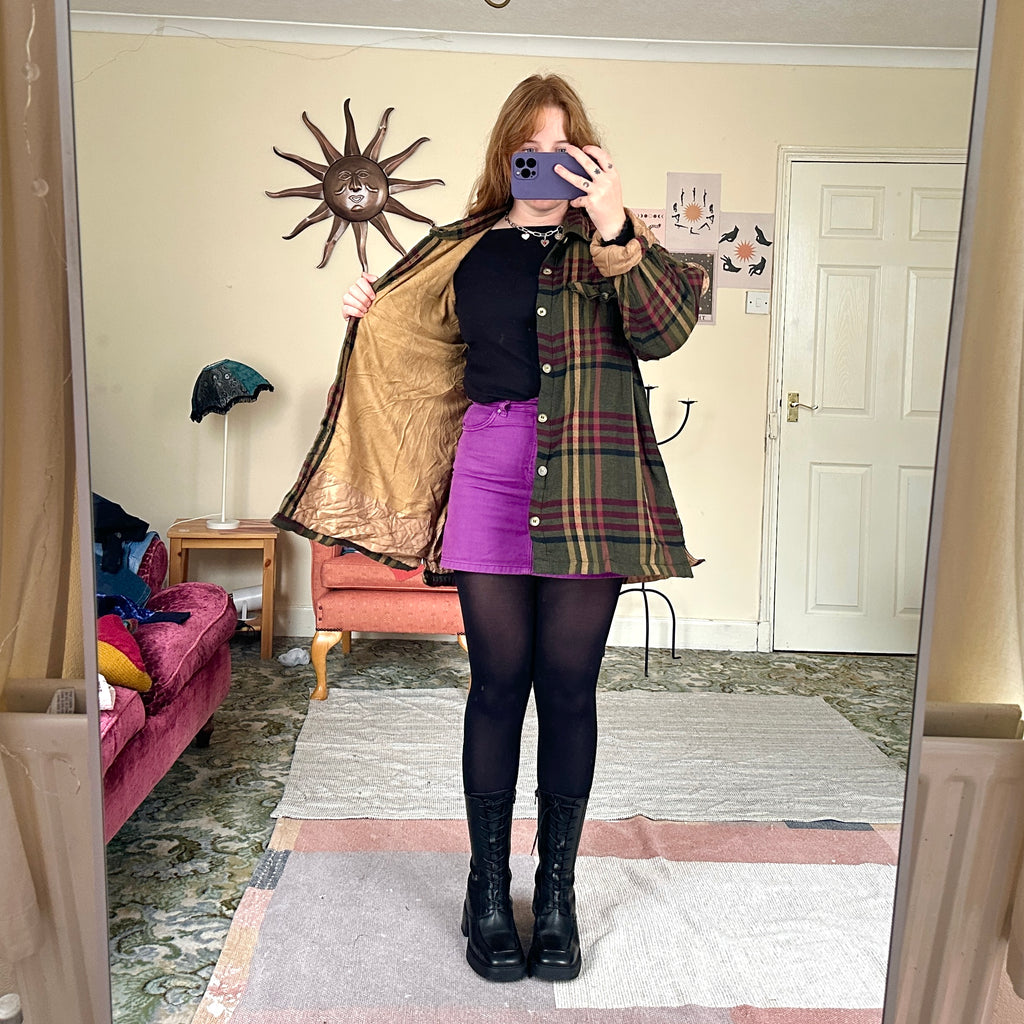 Dreamyyy vintage cotton flannel jacket with fleece lining. Features cute collar, pockets and button front. Gorgeous autumnal colours of sage/forest green and purple tartan check. 🌲🌲 Size XLĀ - will fit size 10-16 comfortably. I’m size 10 for ref 🌲🌲