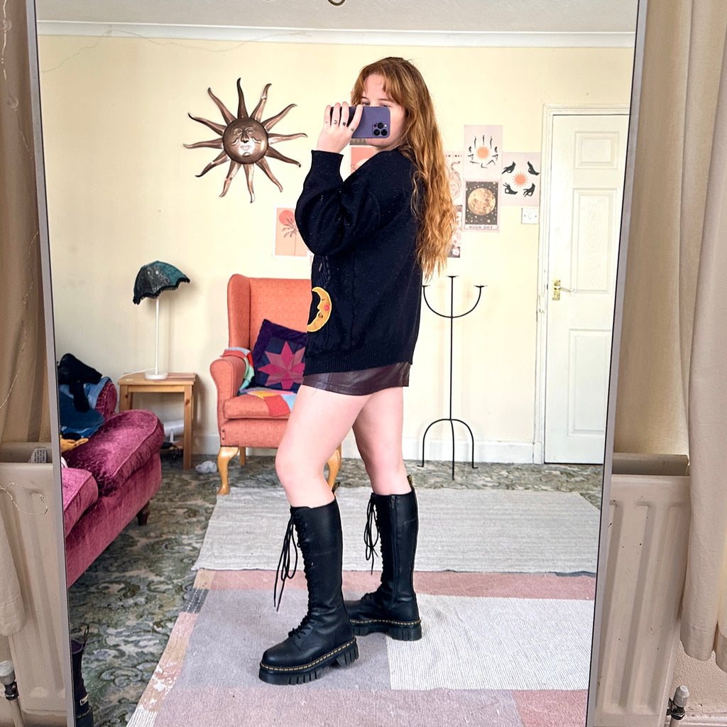 Dreamyyyy vintage cardigan in navyย knit. Reworked by me with embroidered stars, sun and moon made from recycled fabrics. Features button front and relaxed fit. Made from a soft 50/50 wool and acrylic mix knit. ๐๐ Size Lย - will fit size 10-16 best. Iโm size 10 for reference.๐๐