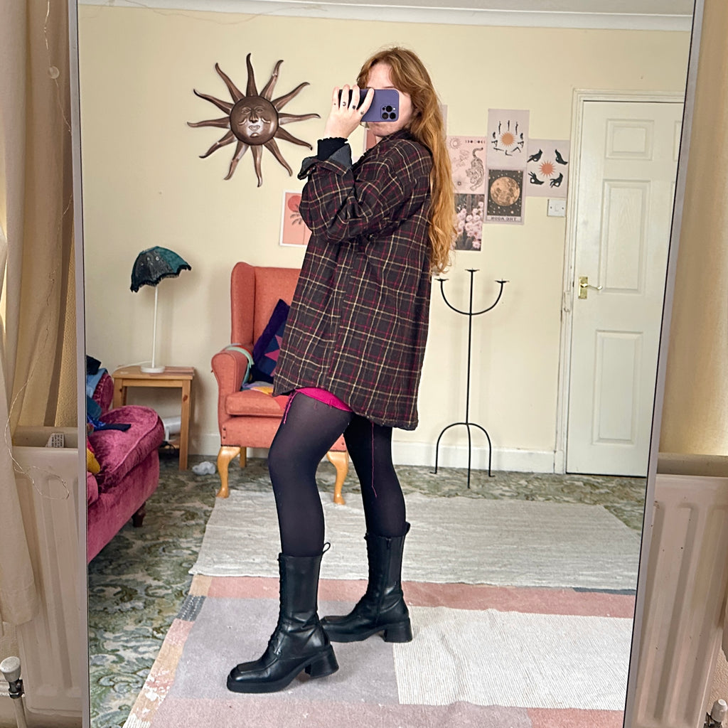 Vintage cotton flannel jacket with lining. Features pockets and button front. Lovely neutral black, beige and pink tartan check. 🍇🍇 Size XL - will fit size 12-18 comfortably. I’m size 10 for ref 🍇🍇