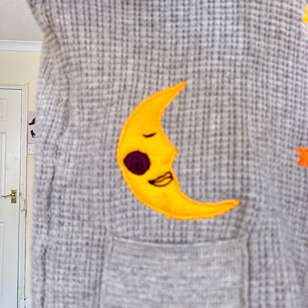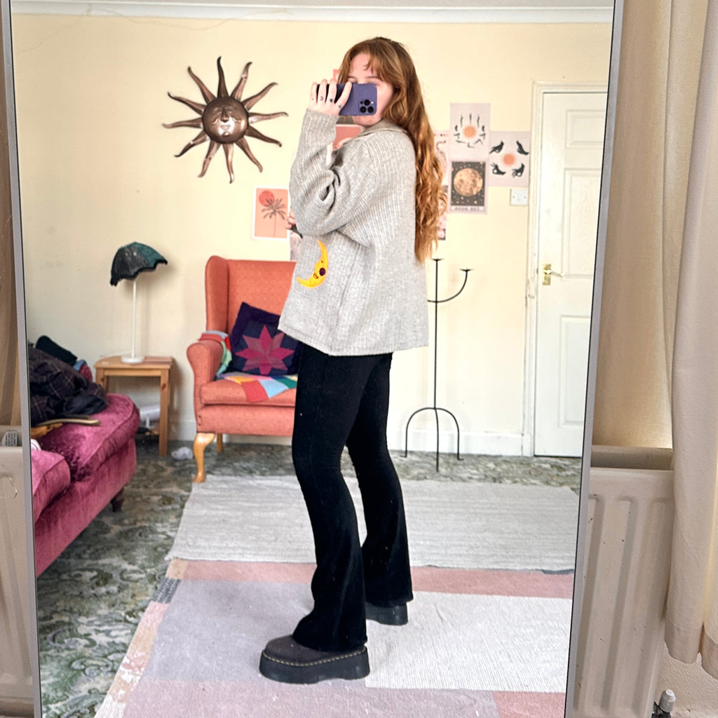 Adorable vintage cardigan in grey knit. Reworked by me with embroidered stars, moon and pumpkin. Features button front and relaxed fit. Made from what feels like a soft wool acrylic mix knit. 🌙🌙 Size XL - will fit size 12-18 best. I’m size 10 for reference.🌙🌙