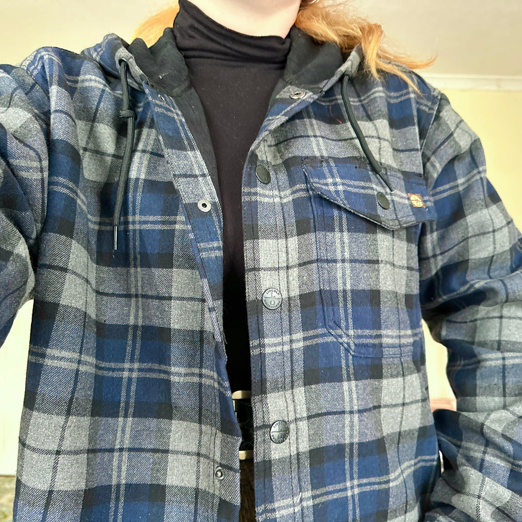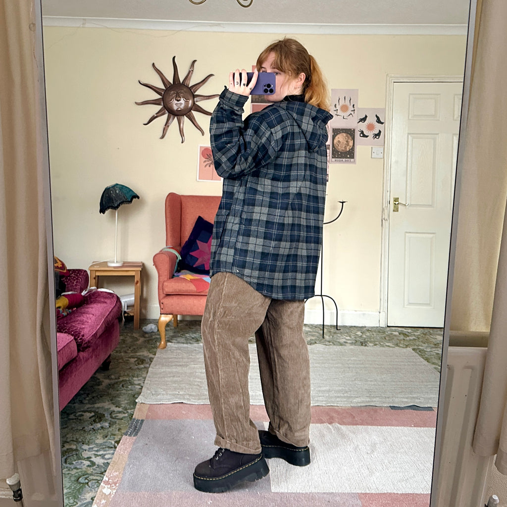 Vintage polycotton flannel jacket with fleece lining. Features pockets, hood and popper button front. Lovely neutral black, navy and grey tartan check. šŸ‡šŸ‡ Size L - will fit size 12-16 comfortably. I’m size 10 for ref šŸ‡šŸ‡